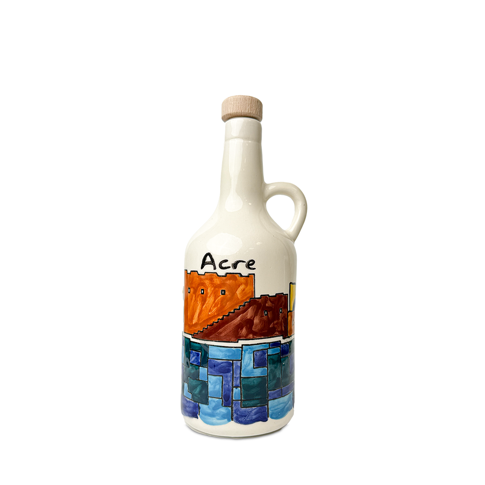 Handgemalte Keramik-Olivenölflasche aus Hebron + 500 ml Olivenöl – Limitierte Kunstedition mit Stadtmotiven aus Palästina