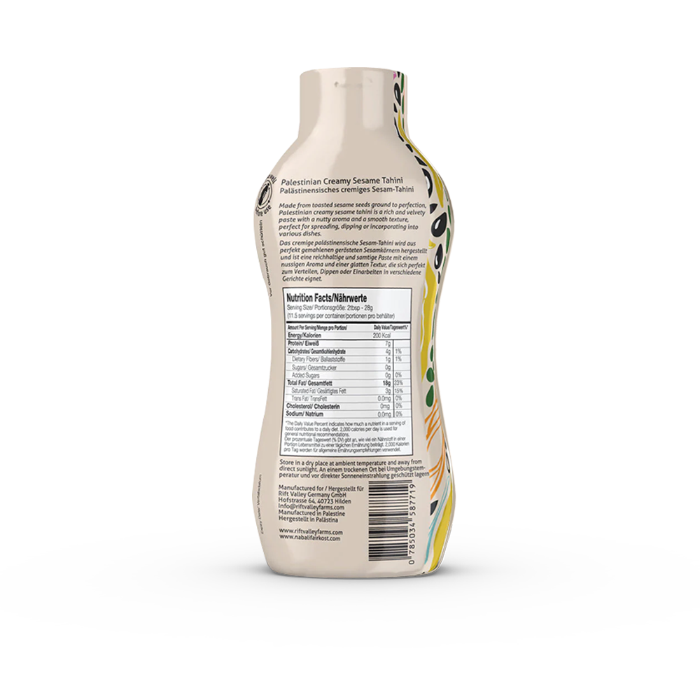 Tahini aus Palästina ist eine Spezialität, die aus 100 % reinem Sesamöl gewonnen und unter fairen Bedingungen hergestellt wird. Die samtige Paste wird in einer praktischen Tube angeboten, was die Anwendung und Dosierung besonders einfach macht. So wird jede Portion Tahini mühelos herausgedrückt und präzise verwendet – ideal für die kreative Küche!